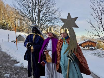 Am 3. und 4. Januar waren in der Oberau, Pfarrei Heilige Familie im Stiftsland Berchtesgaden, 15 Kinder und Jugendliche der Ministrantengruppe als Heilige Drei Könige unterwegs. Sie gingen von Haus zu Haus um allen die Frohe Kunde der Geburt Christi zu verkünden und den Segen in jedes Haus zu bringen.