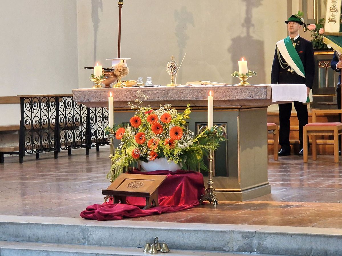 Um 08.30 Uhr fand dann in der Pfarrkirche die Festtagsmesse unter der musikalischen Begleitung des Kirchenchores statt. Draußen vor der Kirche schossen die Fronleichnamsschützen zur Opferung, zur Wandlung und zur Kommunion ihre Salven und untermalten damit die hohe Bedeutung dieses kirchlichen Festes.