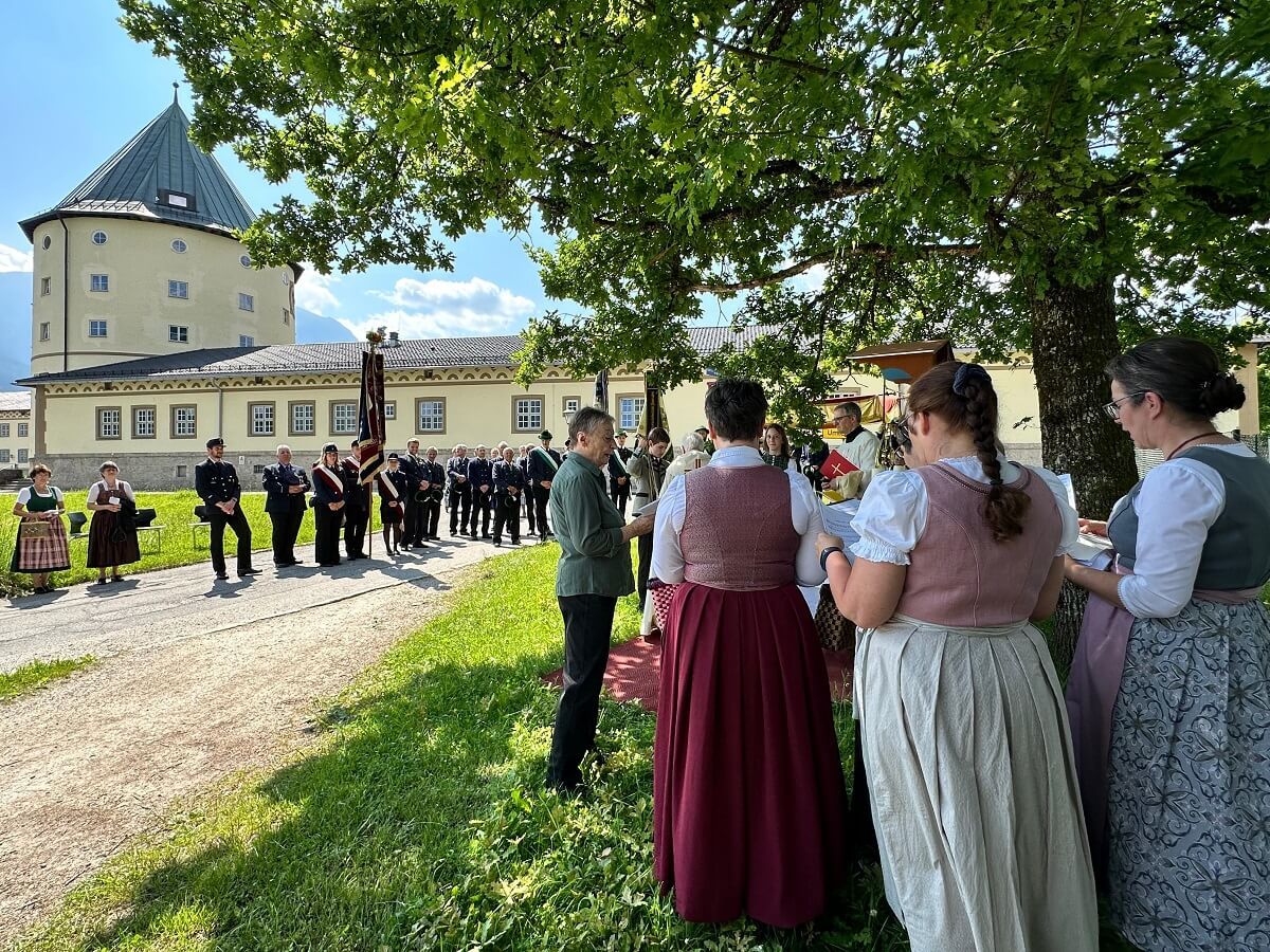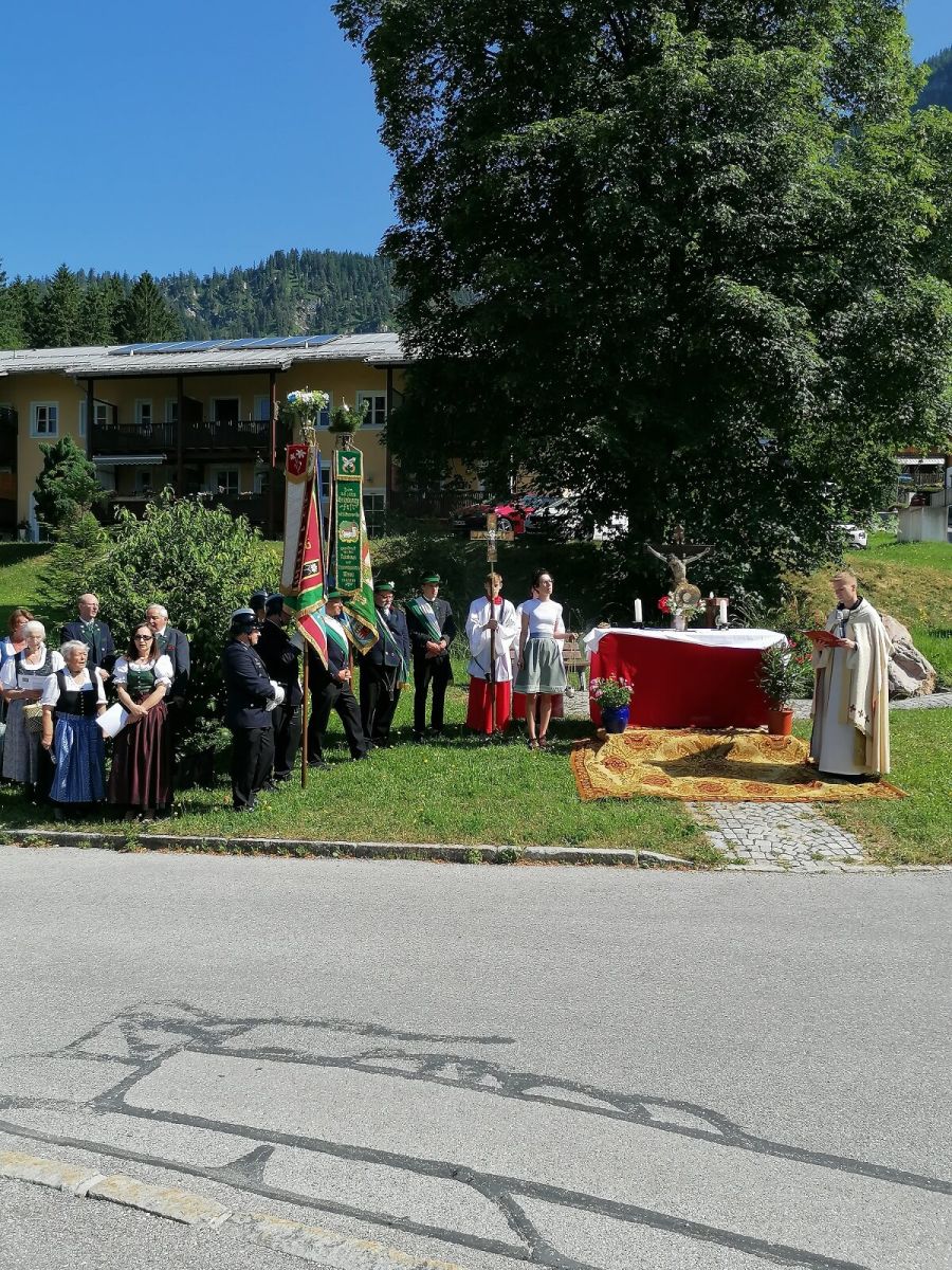 In allen drei Pfarreien hatten Ehrenamtliche die Altäre hergerichtet und geschmückt, auch an den Häusern entlang des Prozessionswegs waren entsprechende Tücher und andere Dekorationen zu bewundern. Pater Fidelis und Pfr. Bielasik trugen unter dem Himmel das Allerheiligste durch die Straßen, die Schützen sorgten für eine lautstarke Würdigung der Feier. Mitglieder der jeweiligen Kirchenchöre unter Leitung von Angela Hanke und in Bischofswiesen die Musikkapelle sorgten für die Verehrung des Allerheiligsten durch geistliche Gesänge.