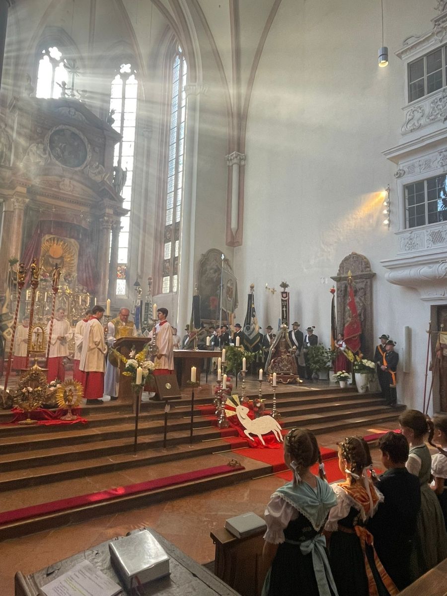 Viele sind engagiert, dass dieses Hochfest des Leibes und Blutes Christi – wie es offiziell heißt – in traditioneller Feierlichkeit begangen werden kann. Das Mesnerteam mit den vielen Helfern im Hintergrund. Die Ministranten und Lektoren, die trotz Urlaubszeit daheim geblieben sind und ihren Dienst treu verrichten. Kirchliche Gruppierungen, Trachten- und Schützenvereine, Zünfte, Bergleute und Musikkapellen begleiten mit ihren Fahnen und Heiligenfiguren das Allerheiligste und bilden vor den Bergen im gleißenden Sonnenlicht ein eindrucksvolles Bild des pilgernden Gottesvolks. Die Hausbesitzer, denen es eine Ehre ist, wenn die Prozession an ihrem Wohnsitz vorbeizieht oder gar eine Statio einlegt. Die Himmelträger und die Zelebranten, die das Allerheiligste in der Monstranz durch den Wohnort und die Fluren tragen.