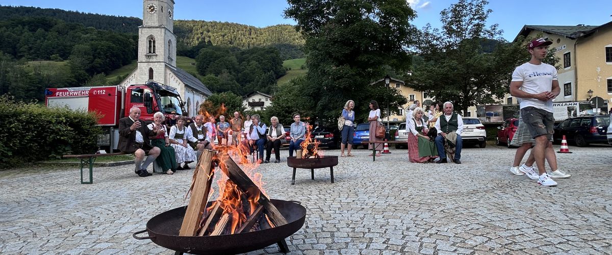 Nach der Feier zogen alle gemeinsam zum Marktplatz, wo ein Johannisfeuer entfacht worden war. Die Jugendfeuerwehr sorgte für entsprechende Sicherheit.