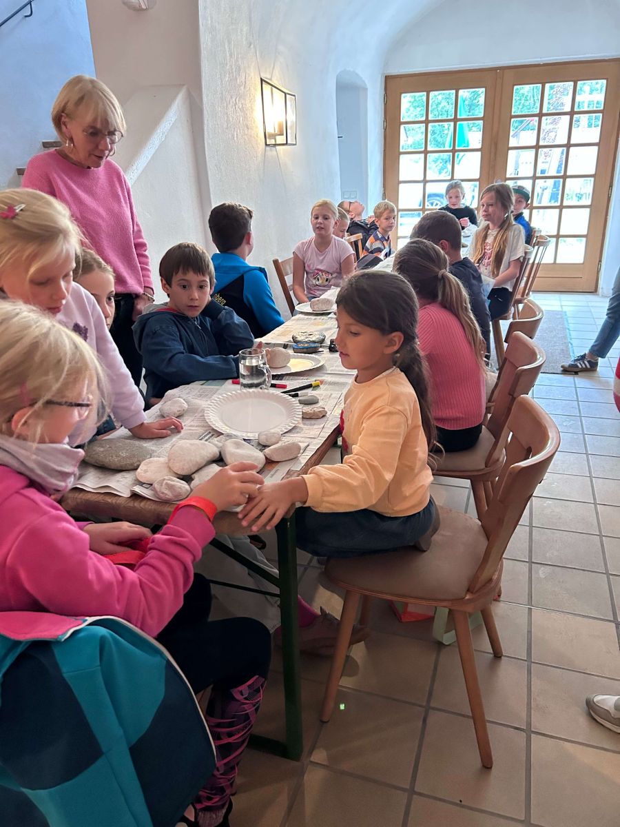 Ein große Schar Kinder folgte der Einladung des Pfarrgemeinderats zum diesjährigen Kinderferienprogramm. „Bastelaktion mit anschließender kulinarischer Verkostung“ hatte sich in den letzten Jahren bewährt. So entschloss man sich heuer Steine bunt anzumalen um im Anschluss leckere Burger genießen zu können. Vielen schöne Kunstwerke sind im laufe des Nachmittags entstanden. Pater Manfred stattete den Kindern vor dem Essen einen kurzen Besuch ab und sprach gemeinsam mit ihnen ein Tischgebet . Die Mitglieder des Pfarrgemeinderats und Sekretärin Carmen Zauner konnten am Ende des Nachmittags ein ausschließlich positives Resümee ziehen und freuten sich mit den Kindern über die gelungene Veranstaltung, die mit Sicherheit nächstes Jahr wieder angeboten werden kann.