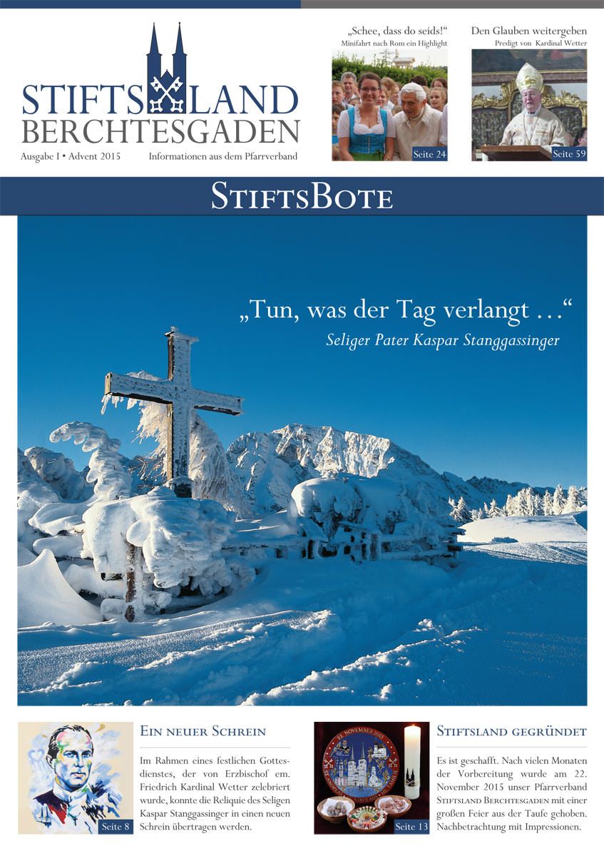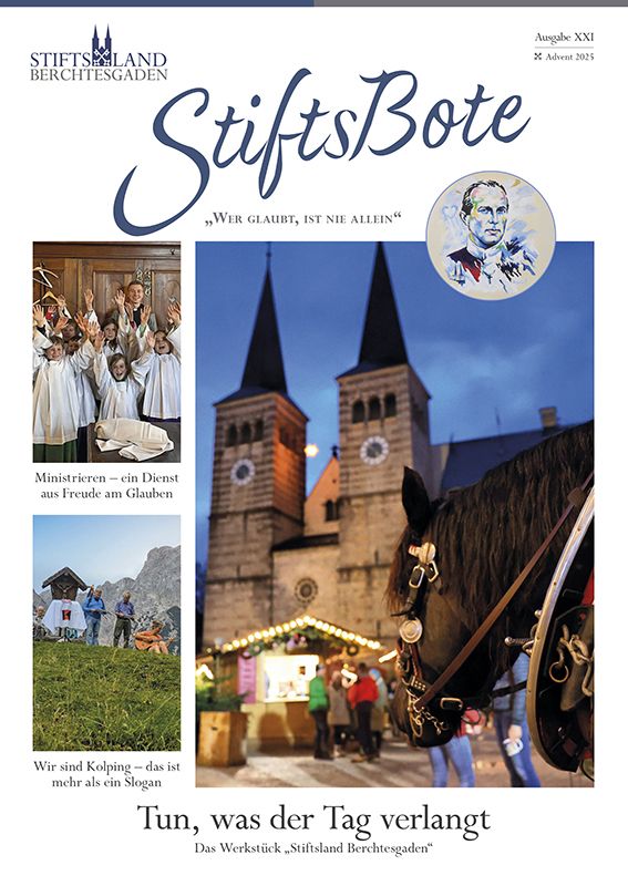 Der StiftsBote ist das offizielle Mitteilungsblatt des Stiftslands Berchtesgaden – und weit mehr als eine Sammlung von Terminen: Er ist Stimme, Fenster und Herz unserer lebendigen Glaubensgemeinschaft. Ob spirituelle Impulse, Einblicke in das kirchliche Leben, Veranstaltungshinweise oder Berichte aus den Pfarreien – der StiftsBote verbindet Menschen und macht das vielfältige Leben im Stiftsland sichtbar.